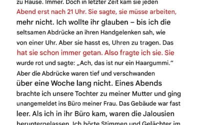 Meine Frau fing an, nach 21 Uhr mit seltsamen Flecken an ihren Handgelenken nach Hause zu kommen – also tauchte ich eines Abends unangemeldet in ihrem Büro auf
